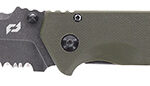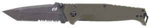 Schrade Melee assisted open with a tanto 3.50″ blade and an OD green handle.
