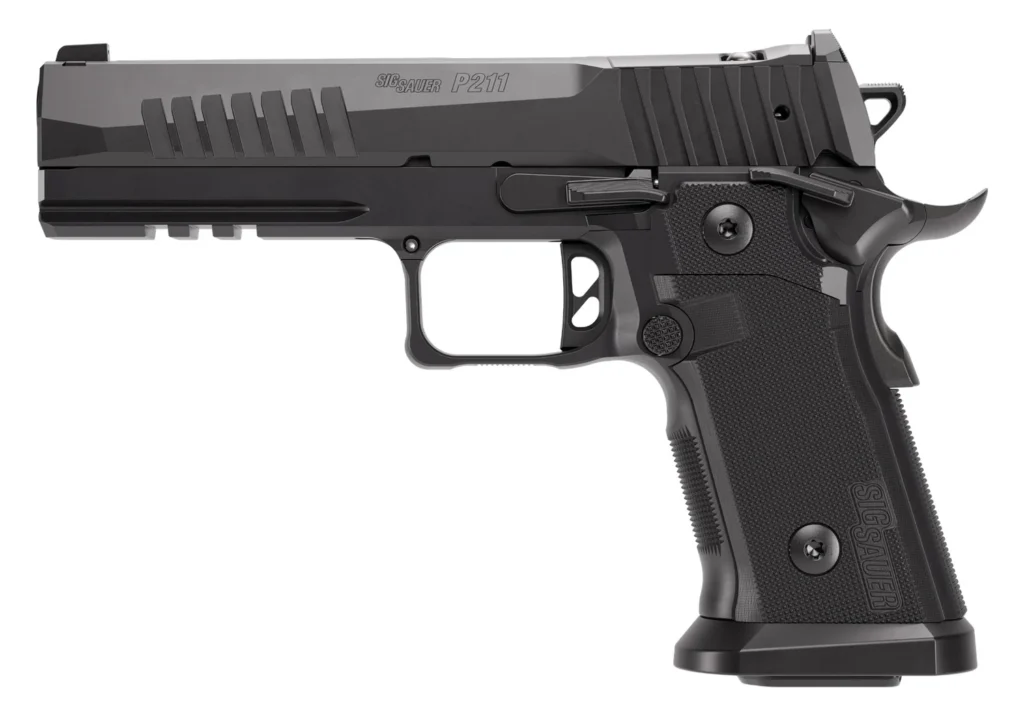 Sig Sauer 211F9GT510 P211 GT5 Full Size 9mm Luger 10+1 5″ Black Barrel, Black Nitron Stainless Steel Optic Ready/Serrated Slide & Frame w/Beavertail & Picatinny Rail, G10 Grip Panels, SIGLOC-PRO Footp