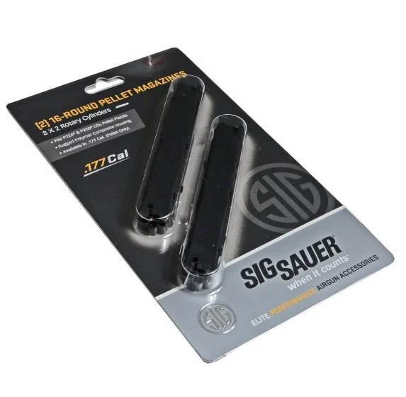 16rd .177 Caliber Magazine for SIG SAUER P226 and P250 air pistols. This magazine is constructed of durable polymer and features dual 8 pellet or steel rotary clips. Not compatible with the P320 ASP Air Pistol.