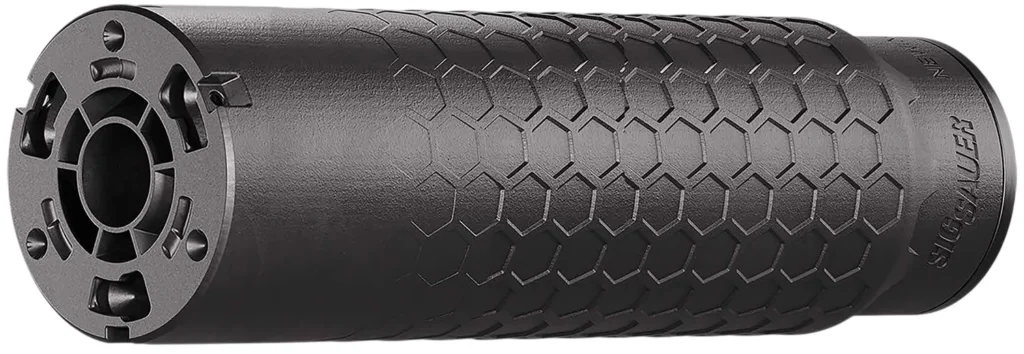 The new SIG SAUER HEXIUM line of suppressors brings low back pressure and quiet, clean tones to your favorite firearm platform. Versatile, durable, and supported by the best warranty in the industry, SIG SAUERs HEXIUM line was engineered for demanding shooters with high expectations for suppressor performance. Utilizing SIG SAUERs advanced additive manufacturing techniques, state-of-the art computer analysis and industry leading testing equipment, the HEXIUM line of suppressors brings true performance and sound quality to shooters everywhere. For easy compatibility across platforms, the HEXIUM is furnished with a Hub Taper Direct Thread Mount, providing a quick and easy mounting solution. At the front end of the suppressor, a new modular end cap design was added for an accessory mounting system.