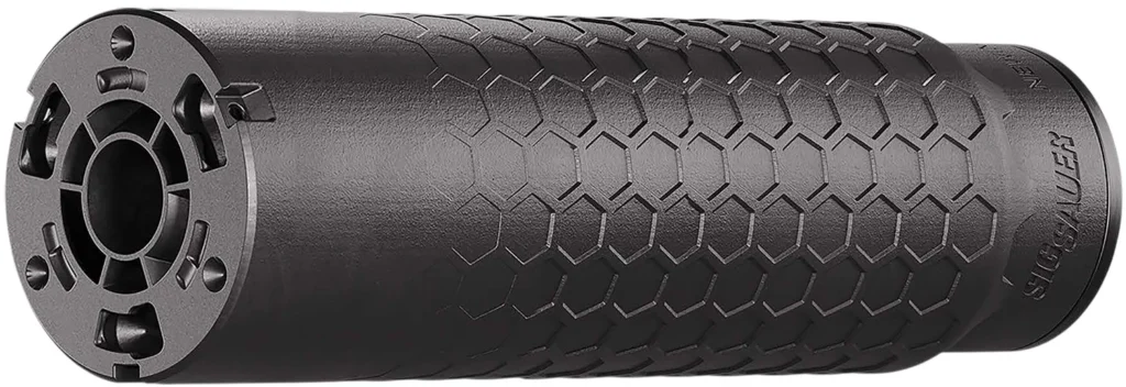The new SIG SAUER HEXIUM line of suppressors brings low back pressure and quiet, clean tones to your favorite firearm platform. Versatile, durable, and supported by the best warranty in the industry, SIG SAUERs HEXIUM line was engineered for demanding shooters with high expectations for suppressor performance. Utilizing SIG SAUERs advanced additive manufacturing techniques, state-of-the art computer analysis and industry leading testing equipment, the HEXIUM line of suppressors brings true performance and sound quality to shooters everywhere. For easy compatibility across platforms, the HEXIUM is furnished with a Hub Taper Direct Thread Mount, providing a quick and easy mounting solution. At the front end of the suppressor, a new modular end cap design was added for an accessory mounting system.