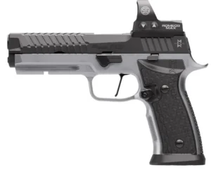 The P365-DH3 Comp AXG features an integrated expansion chamber paired with a 3.7-inch barrel. It includes custom DH3 serrations lightening cuts and a durable coyote Cerakote finish. A coyote AXG grip module features an aluminum construction with polymer grip panels.