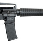 This model has a 16″ barrel, aluminum flat-top receiver with a removable carry handle. It also has a 6-position telescopic buttstock, an A2 front and adjustable rear sights, and a Mil-Spec flash suppressor.