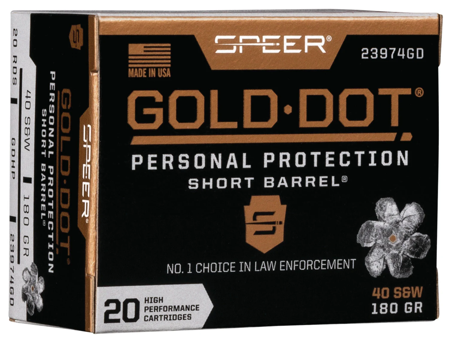 Speer 23974GD Gold Dot Personal Protection Short Barrel 40S&W 180gr Hollow Point 20 Per Box/10 Case