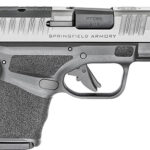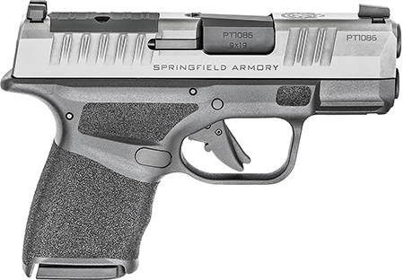 Springfield Armory micro-compact Hellcat features unique top slide serrations to maximize your grip on the slide; non-proprietary accessory rail allows you to accessories with your favorite light and/or laser; Tritium/Luminescent front sight, Tactical Rack U-Notch rear sight; reversible mag release, loaded chamber indicator and custom pressure activated grip texture. Includes 2 magazines and case.