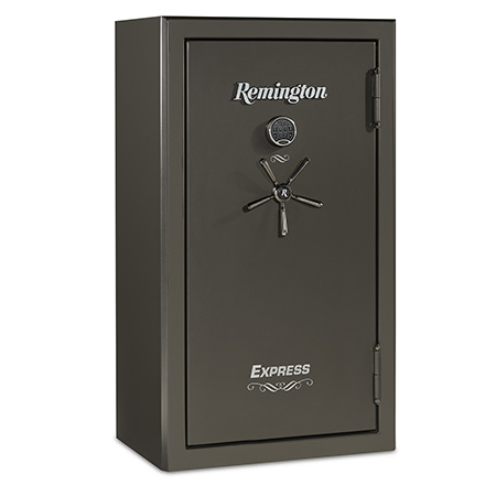 The Remington Express 34-Gun Safe is prepared for the elements with a 12-gauge industrial steel body and Triple Seal technology. This fireproof and waterproof safe is one you can depend on to keep your firearms and valuables protected. Backed by a high-performance SecuRam UL Rated electronic lock, twelve robust steel locking bolts, and a relocker device for maximum in-home security. Motion-activated LED lights come installed inside the safe for easy access in low light conditions. The fully carpeted interior features ample storage with the deluxe pocket door organizer, Zero-Sag steel-reinforced top shelf, barrel rests, and adjustable side shelves. Keep gun safe accessories charged with the integrated UL Rated dual power outlets and two USB ports. Includes a waterproof bolt-down kit for use with the four pre-drilled holes and our best-in-class Lifetime Warranty that covers your entire Remington safe against theft, fire, natural flood, locks, parts, and paint.