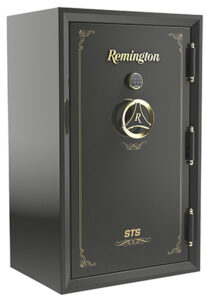The Remington STS long gun safe has plenty of storage, enough for 50 long guns, 8 handguns, and 1 long gun on the door. The interior is wall-to-wall, ceiling and floor upholstered with sleek quilted nylon. It features adjustable shelving/barrel rests and two clear glass shelves. This electronic safe is fully lit by LED lighting and includes two built-in USB ports and a dual plug outlet. Security is not a worry, this safe features a SecuRam electronic lock with two override keys. In the event that excessive force or drilling is detected, the relocker will engage and the safe will go into lockdown. This safe is fire-rated for 120 minutes at 1800 degrees, and water-tight up to 2 for 7 days.