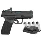 ombining the performance of a larger handgun with class-leading concealability and capacity the new Hellcat Pro is a compact pistol that delivers the perfect balance. Chambered in 9mm the Hellcat Pro offers 15+1 capacity in a smaller footprint than any other gun in its class. Optics ready and equipped with a versatile accessory rail this exceptional everyday carry pistol combines compact dimensions with the performance capabilities of a full-sized pistol.