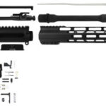 The TacFire SS-RK556 rifle build kit contains- 16″ 5.56 Nato, M4 contour barrel/nitride; birdcage flash hider w/crush washer; 15″ MLOK free float handguard; AR15 5.56/.223/.300 AAC stripped billet upper receiver w/M4 feed ramps/.556 Mil-Spec charging handle aluminum w/steel latch; dust cover; AR-15 forward assist; AR-15 standard receiver end plate; Mil-Spec/commercial castle nut/steel; buffer tube aluminum; AR 15 3 oz buffer w/tube spring; AR-15 USA made lower parts kit and a AR-15 standard A2 style black pistol grip/A2 style. *Sports South Exclusive.