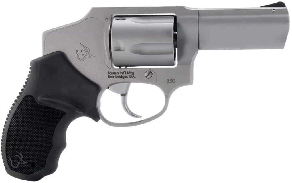 Taurus 2-850139 850 Small 38 Special 5 Shot 3″ Matte Stainless Steel Barrel & Cylinder, Matte Stainless Steel Frame, Black Rubber Grip, Transfer Bar Safety, Concealed Hammer