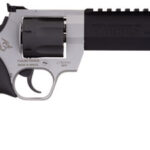 The Taurus Raging Hunter is a 454 Casull, 5-shot revolver. Its striking Stainless and Blue two-tone finish is enough to grab the attention of any big-bore aficionado, but the optics-ready Picatinny rail and angular barrel design will seal the deal. The unique barrel system incorporates a steel sleeve that is inserted into an aluminum housing that cuts down on the overall weight, making this a well-balanced hunting sidearm. The exclusive cushioned insert grips on the Raging Series large frame revolvers makes shooting them comfortable and controllable. Also aiding in recoil management is the unique placement of the factory-tuned porting and gas expansion chamber that is designed to disperse gases directionally-reducing muzzle lift and delivering quicker target acquisition. This built-to-last revolver is a fun and effective alternative for short to medium range hunting scenarios.
