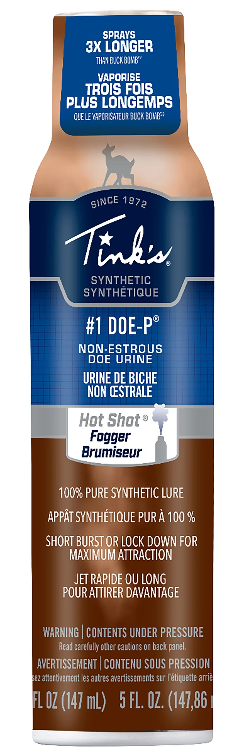 Tink’s #1 Doe-P Fogger is designed to dispense 100% pure synthetic lure without any contamination. Not mixed with any propellants, the fogger offers an adjustable spray-rate so you control the attraction. Tink’s #1 Doe-P Synthetic Formula is most effective during the early, pre-rut and rut as a doe simulant but can be used all-season long. It also works great as a universal cover scent.