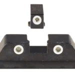 Trijicon Bright & Tough Night Sights are three-dot iron sights that increase night-fire shooting accuracy by as much as five times over conventional sights. Housed in a metal body and cushioned within silicone rubber, Bright & Tough Night Sights feature a unique shock-resistant design. Each lamp is capped with a sapphire jewel to help evenly distribute the light while protecting the lamp from solvents and puncture. Contained within aluminum cylinders for additional protection, the lamps are mounted on silicone rubber cushions to withstand shock and heavy recoil.
