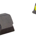 The HD Night Sights were specifically created to address the needs of tactical shooters. The three dot green tritium night sight sets front sight features a taller blade and an aiming point ringed in photoluminescent paint while the rear sight is outlined in black and features a wider U-shaped notch. This unique configuration increases visibility and quickens front sight acquisition even in transitional lighting. Additionally, the front surface of the rear sight is steeply hooked to assist in emergency one-handed slide operation. Green tritium lamps are warranted for 12 years from date of manufacture. Professional installation recommended. Front Sight Width: 0.144″. Front Sight Height: 0.306″. Rear Sight Height: 0.349″.