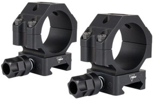 Trijicon Ring Mounts w/ Q-LOC Technology feature a 34mm tube, and are designed to keep the optic as low as possible for hunting and long range precision rifle applications. Featuring a Mil-Spec drop test rated 6061-T6 aluminum design and an easy to use one handed tool less mounting system. The spring-loaded design allows for constant retention and maintaining of zero even if the knobs are not tightened. The Ring mounts boast a low profile design with superior return to zero performance and are compatible with any Mil-Spec or NATO Picatinny rail. Designed specifically for variable power optics, these rings are perfect for mounting Trijicon variable power optics with an objective lens up to 40mm on any weapon platform with a full Picatinny rail.