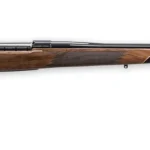 Before composite stocks, brushed stainless steel barrels, and Cerakote finishes every Weatherby Mark V that fell into the hands of lucky hunters was rich gloss AA walnut and blue steel. The Deluxe pays homage to those days of traditional craftsmanship for hunters who still marvel at classic styling. Complete with regal diamond-point checkering, a rosewood forend and grip cap, maple spacers and a Pachmayr Decelerator recoil pad. Barrel 26″ + 2″ muzzle brake = 28″