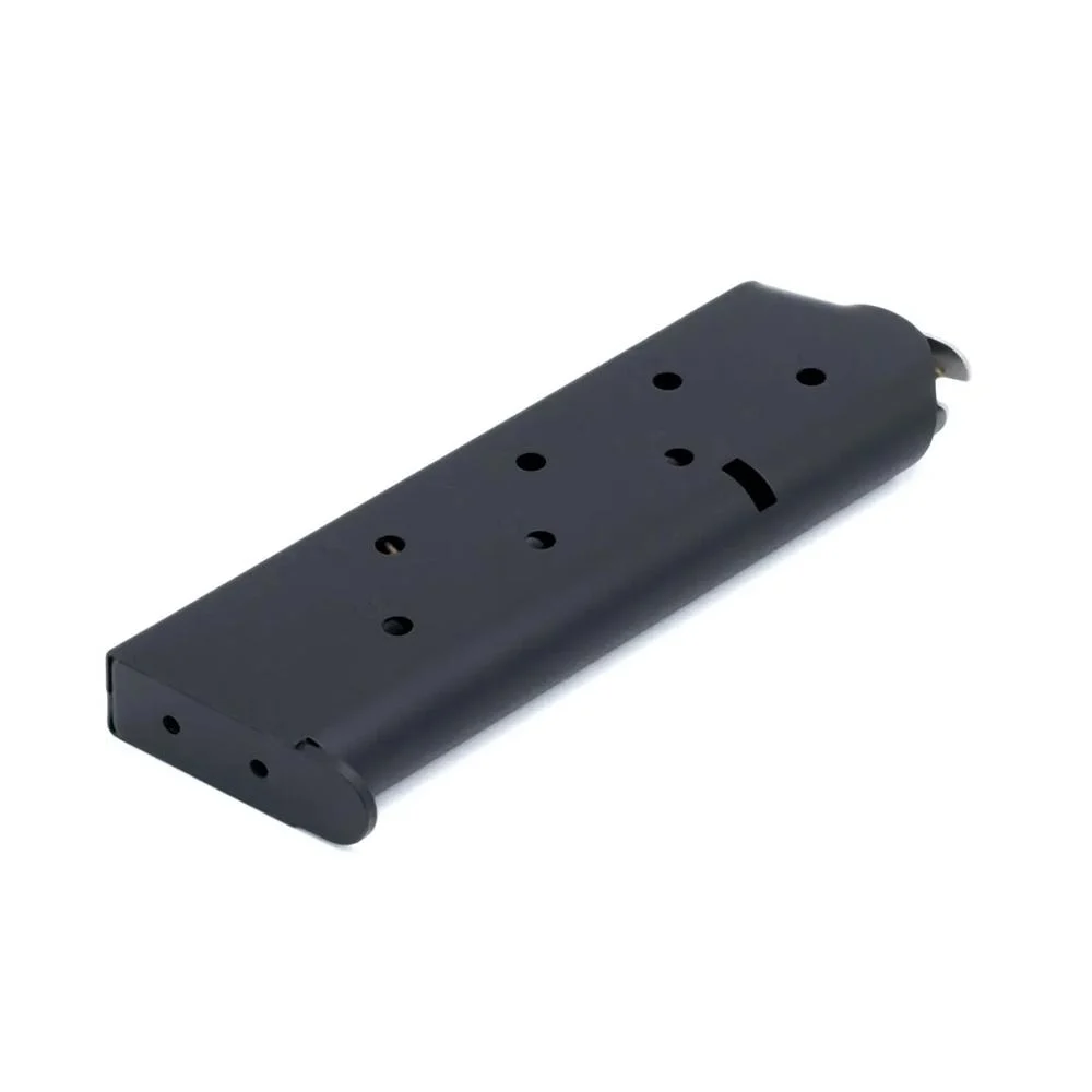 Featuring a conventional flush fit GI-style welded base plate and extra power spring the black oxide finished .45 ACP Full-Size Auto 8 round magazine 920-45FS8B keep your 1911 pistol performing optimally.