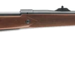 The Model 70 since 1936 it’s been the benchmark against which every other bolt-action rifle is measured. It still has the famous 3-position safety which is convenient to operate with the thumb of your firing hand, lifting the firing pin away from the sear. The forged steel receiver starts from a solid block of steel. The bottom profile of this receiver is flat to offer greater surface area for bedding. It is bedded with a two-part epoxy in two places, at the front and rear to keep things from shifting around inside the stock during firing. The classic Controlled Round Feed (CRF) bolt design is a massive claw extractor that smoothly slips onto and secures about one-quarter of the base of the cartridge. This exerts full control over the cartridge from the time it leaves the magazine, as it enters the chamber, gripping tightly until the cartridge is fully ejected. This design also allows an unfired cartridge to be extracted even if it is not yet fully chambered. The M.O.A. Trigger System is the most precise three-lever trigger system in the world and an improved fit and finish and enhanced accuracy to go along with its classic Pre-’64 controlled round feeding. A blade-type ejector gives you full control when ejecting a fired case. Its free-floating barrel is button rifled in a process that assures superior accuracy and durability. This Safari Express model features a satin walnut stock and a matte metal finish.